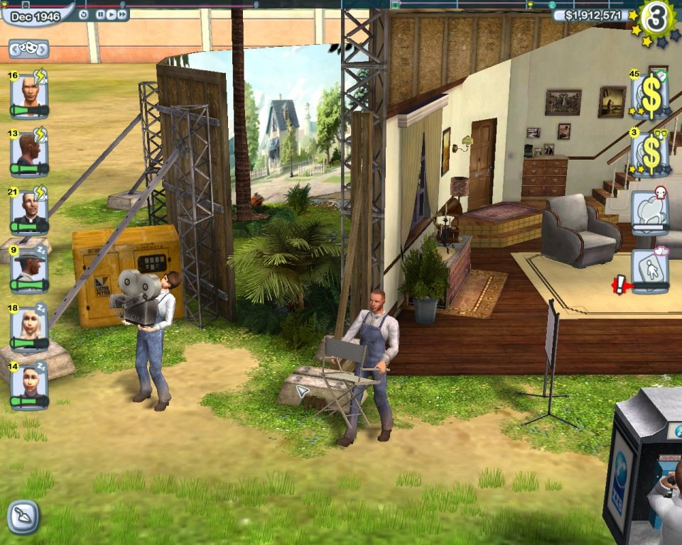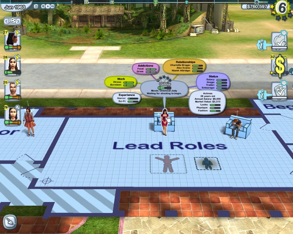 Outside the movie-making it’s very much like The Sims but easier. Your star actors and directors get jealous of each other if they think their underpaid, or have a crappier trailer than they deserve so you give them things to make them happy just long enough for them to do well in the next movie. You do need to play the real game to unlock all the features for the sandbox, but that’s not as tiresome as it could be even though the scriptwriters are constantly wandering around the lot instead of churning out my B-movie scripts!