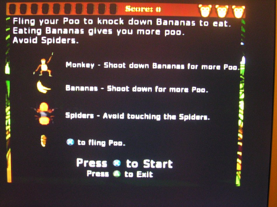 I fire up the game and I’m greeted with this gem of an instruction screen for Monkey Fling: