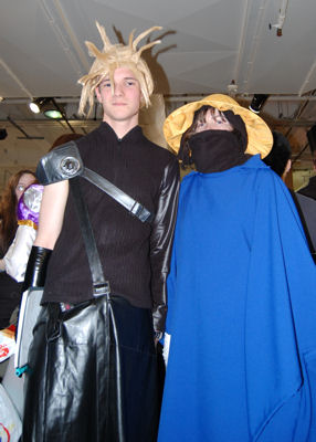 A black mage and one of many Clouds present. Is it just me or is his hair attempting to climb away from his head?