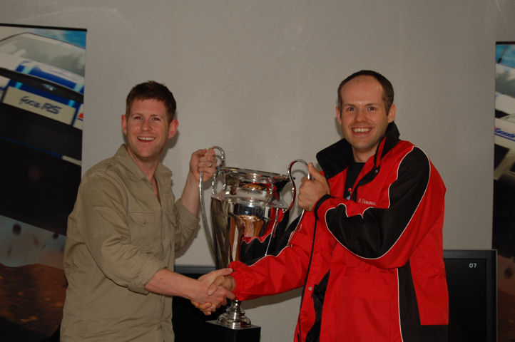 No matter how good or how bad your driving is, Sega Rally will modify the AI to give you a decent challenge. Allegedly. It still needs tweaking as, according to the marketing team, none of the bloggers last week finished higher than third place. Only two came close and one of those was TheFluffyFist, rally-driver extraordinaire. He won a jacket and everything. He’s wearing the jacket prototype in the photo below and has done a remarkably good job of hiding all the giant SEGA logos. We didn’t get to take the giant trophy home. They told us that they’d have his name engraved on it at some point, not that he’ll ever get to see it or show anyone. Uhh.. back to the point, the marketing team assured us that the AI is still in development and will be much better in the finished version.