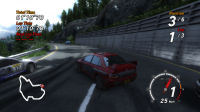 Sega were very proud of the fact that when you skid through the muddy parts of the track, your wheels will churn up the track surface. These tyre troughs will persist through the whole race, potentially destroying the traditional racing line. You can really feel the difference in the track on laps two and three, through the magic of force feedback. (Or not, if you’re stuck with a sixaxis controller). This brings the game much closer to the spirit of rally racing, forcing you to negotiate unexpected lumps and bumps. MotorStorm tried to do the same thing but, as we have noticed ourselves, track marks would disappear and reappear for no obvious reason. Gouges stay where they’re supposed to in this version of Sega Rally. - The race cameras are all useful: