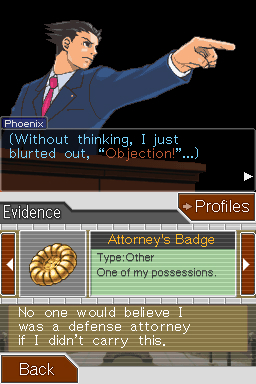 IMO, the first English-language game, Ace Attorney, was the better game. The information-gathering segments feel quite different to the trials as you gather clues and piece the story together. In Justice For All you’re given items and then have to struggle with the witnesses, showing the items at crucial points during conversations in order to reveal enough of the story to trigger the trial.