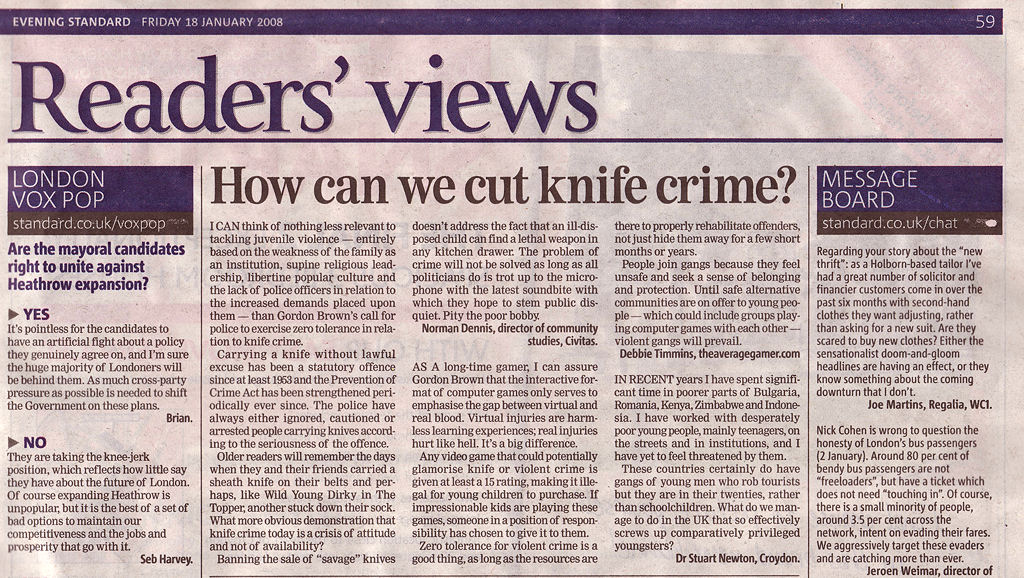 The Evening Standard emailed me asking for my opinion. My response was stripped of all personality but published in their Friday print edition with the general point still intact. Even better, it was alongside two other responses who were equally disdainful of the connection between games and real-world violence. Here’s what I sent them: