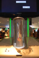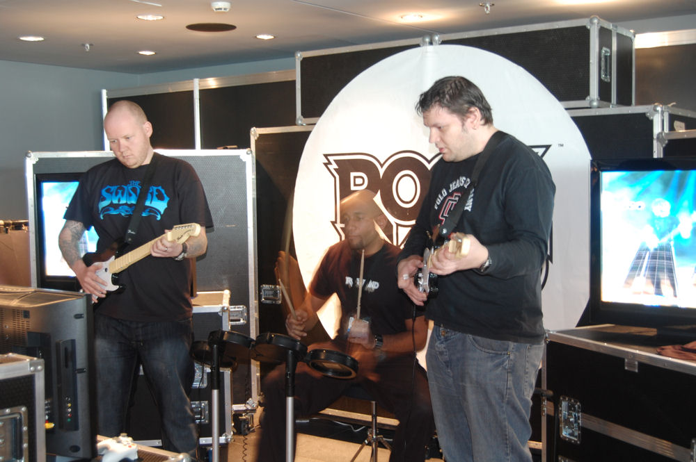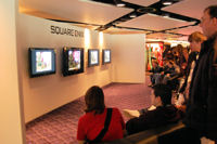 Upstairs was slightly more spacious but didn’t have a whole lot of playable games. The Square Enix section was four TVs showing the same video montage loop. The Mac stand was nice but didn’t garner much interest. Haze and Gran Turismo 5 were popular, the latter having a very nice set of Recaro chairs hooked up to PS3s. Rock Band had a good following. I can only assume that playing it is a lot more fun than spectating. The contrast between a real band and Rock Band was just too obvious in that public setting. It was very much like watching a bunch of school kids playing an unknown piece of music for the first time – all furrowed brows and fervent reading, yet no sense of passion or enjoyment.