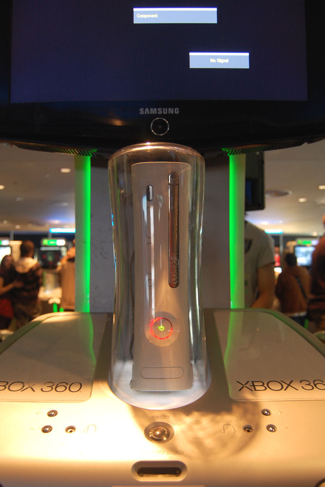 The other thing we noticed (and Xino pointed out) was that a lot of the games weren’t exactly new. The 18-only section had such gems as Kane and Lynch (demo already available on Xbox Live), Gears of War (ditto), Oblivion (on PS3, okay) and Halo 3 (being monopolised by people who have clearly played it before). We were amused to find a 360 proudly displaying the Red Ring of Death. ButtonBandits also had a good giggle.