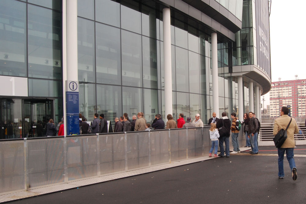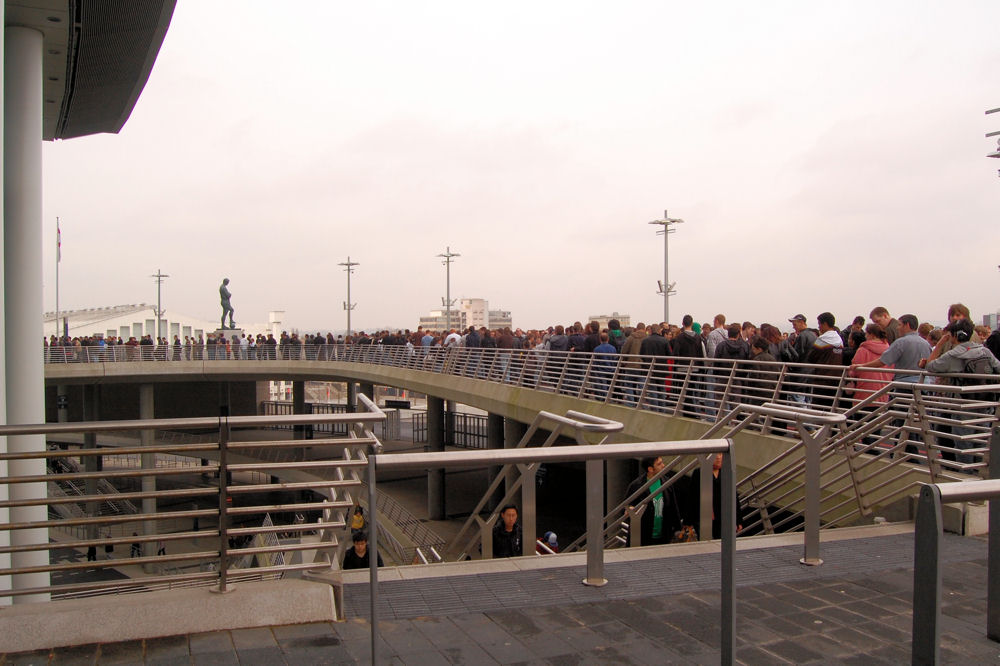 It was… packed. Absolutely bloody rammed with people and not really designed to cope with such a high level of interest. Check out the queue for people with standard tickets, as of 10:30 am.