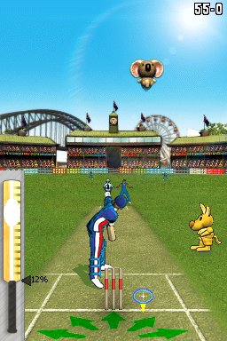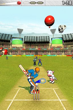 Blasting its way onto the DS right now is Freddie Flintoff’s powerplay cricket. This is the first cricket game on the DS, and I’m pretty sure its the first cricket game to feature animals on the pitch. I mean check out the screenshots. What is that cow doing there and the flying koala? Madness.