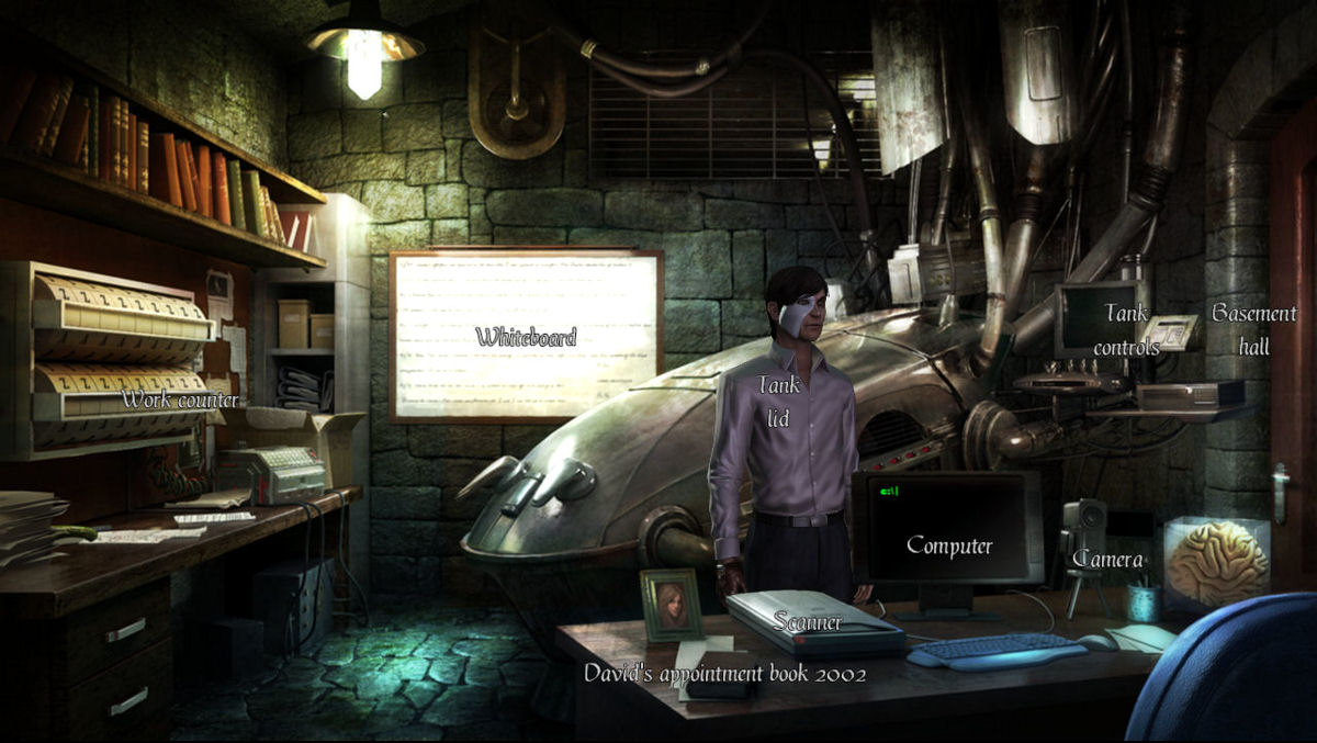 To be fair, the team at Wizarbox have mode some improvements to the traditional point-and-click experience. There’s an option to flag up everything that you can interact with, which nicely works around pixel-hunting. They’ve also… um… er… nope, that’s it. The rest of the interface design feels like a dumbed-down version of a 90s adventure. Depending on what you’re supposed to do with an object, the cursor changes to indicate your action. If there’s nothing, you can only look. If you can pick it up, you only get a grab icon. If you’re expected to use an inventory object on it, the cursor shows an empty hand to tell you that.