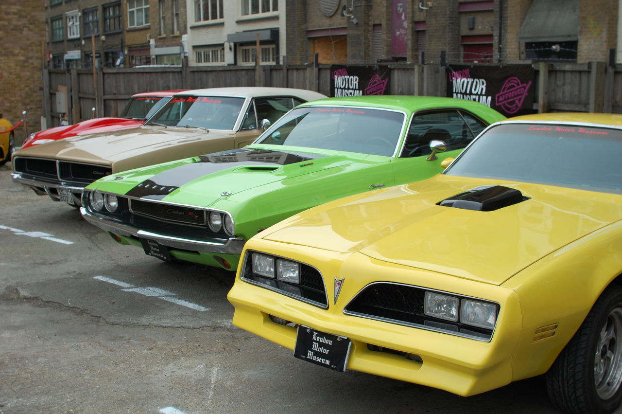 And finally the legendary Ferrari Enzo with the Jaguar E Type 1961 lined up alongside 3 American classics – Dodge Charger, Dodge Challenger and Pontiac Firebird Transam. There are more car photos on our Facebook page including the Koenigsegg CCX.