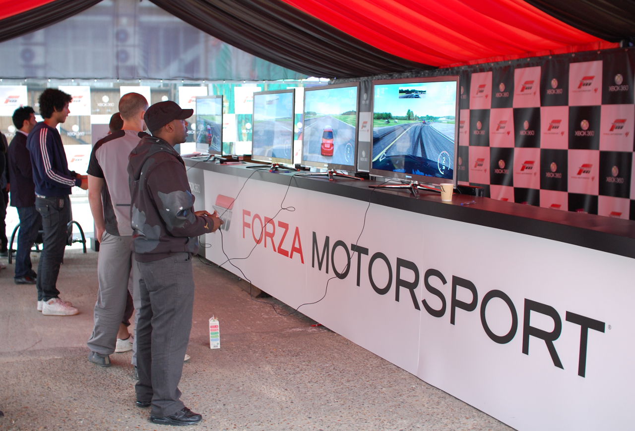 The was also a large Forza Motorsport 4 themed tent containing several Xbox 360’s and flat screens to test out Forza 4 including a set up in the boot of a Land Rover. This gave everyone visiting the chance to get a bit of practice in driving the Kia Cee’d – a reasonably priced car – around the Top Gear test Track before setting their single timed lap. As it turned out I set the 5th fastest time of the day, a 1:46:03 which I was pretty pleased with.
