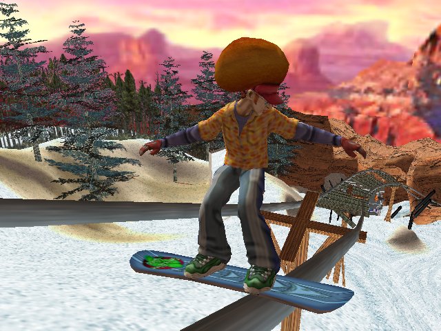 Right there, storming down the snow white slopes, was Wachowski’s huge ginger ‘fro. While Cloud and Leon are busy blowing hair out of their eyes, Eddie is busy blowing opponents away with his awesome tricks.