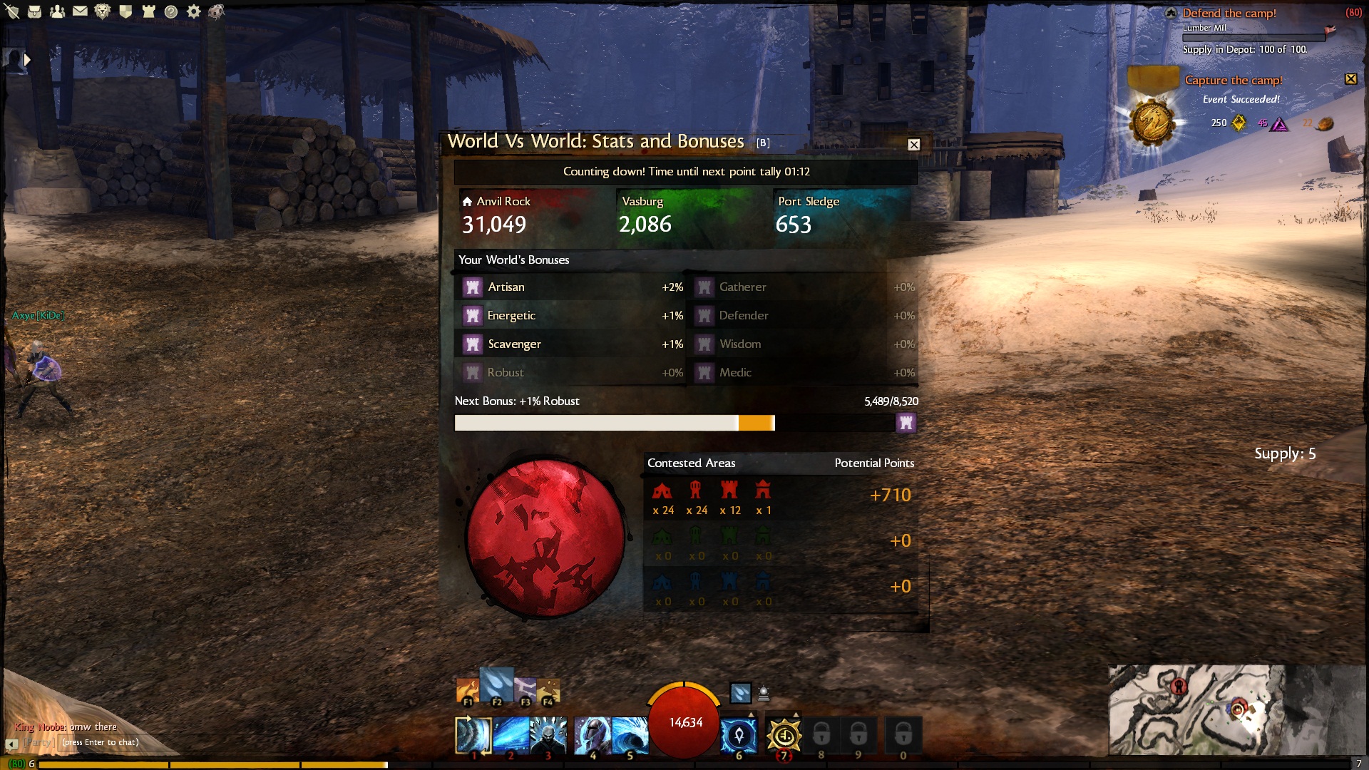 Points do mean prizes and in GW2 these take the form of buffs, buffs and buffs – dependent on your world’s score you can pick up a selection of these (unconfirmed) effects which assist in your everyday PvE routine. Loot will be dropped when you kill an enemy player but as yet I’ve not seen anything about a reputation points vs PvP Vendor kind of system most commonly used. Maybe this will come in a later patch or perhaps the Guild system of Influence will be used to greater effect.