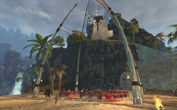 A combat arena set up on the beach. This is taken from one of the vistas in the area.