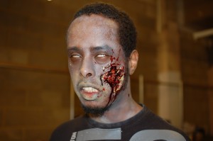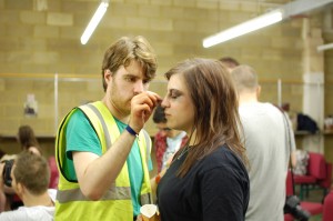 Once we knew what we were doing, it was time for make-up. First the base layer – dark eye sockets and lots of shadow.