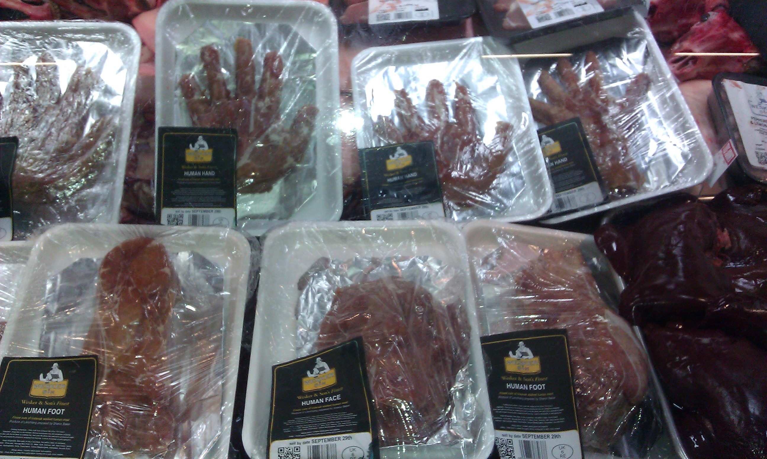 Food Futurologist Morgaine Gaye discussed future trends in meat consumption. If animals all around the world become infected, where do we turn? According to Wesker & Son’s butchers, we’ll start eating each other. Capcom even went so far as to put on an actual butcher’s shop in Smithfield Meat Market selling “human parts”.