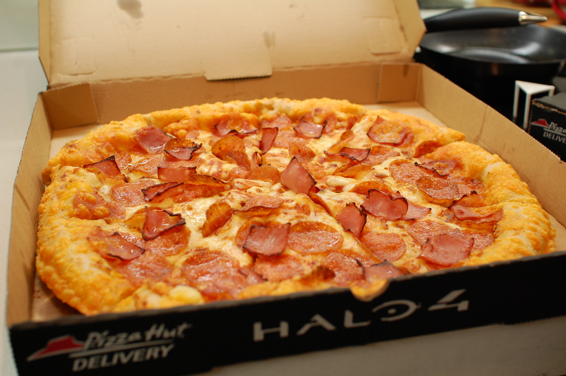 Nobody with any sense, and you know why? Because it’s a horrible, horrible experience. I was listening from the next room and all I could hear was Nick repeating over and over again, “Halo 4 stuffed crust. Halo. Stuffed crust. Halo 4. Stuffed crust. Halo,” as the guy on the other end couldn’t hear a thing. Perhaps the whole promotion is about Microsoft trying to spread the mere-exposure effect outside of normal advertising channels and into our food delivery processes?