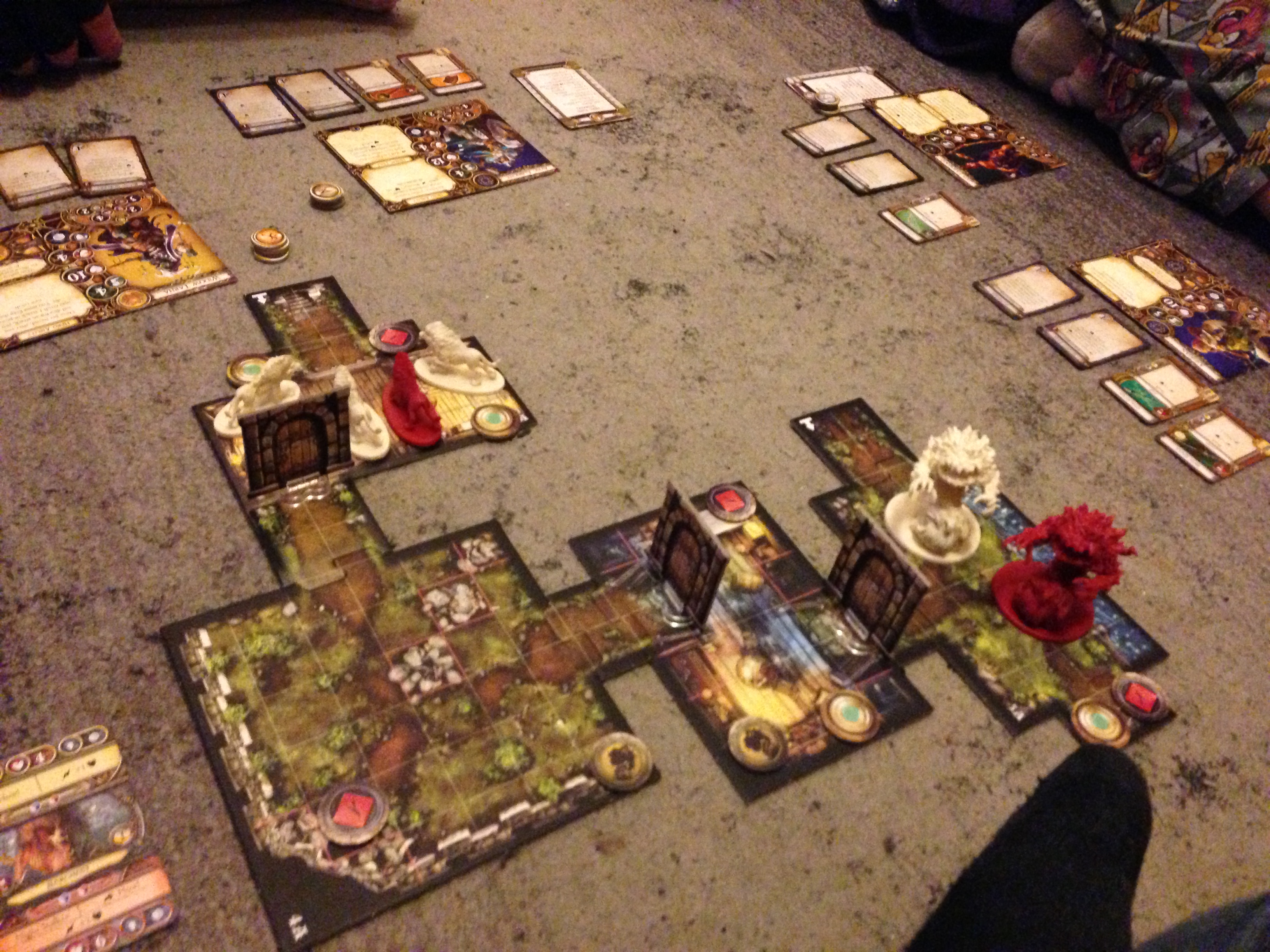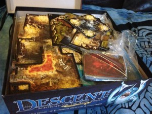 Descent: Journeys in the Dark is a PvP RPG board game. A game of Descent plays out on a map constructed from a large range of tiles. Depending on the adventure being played this could be anything from villages to temples or cold dungeons. Heroes move in from the entrance and make their way around the map killing monsters, saving villagers, hunting treasure or whatever objective the adventure in play details. The Overlord on the other hand has his own objectives; nefarious, evil objectives.