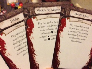 Each player starts with a Hero card showing their character’s stats, some basic skills and equipment. The Overlord gets to draw a hand of trap and event cards they can play in an attempt to gain some advantage over the Heroes.