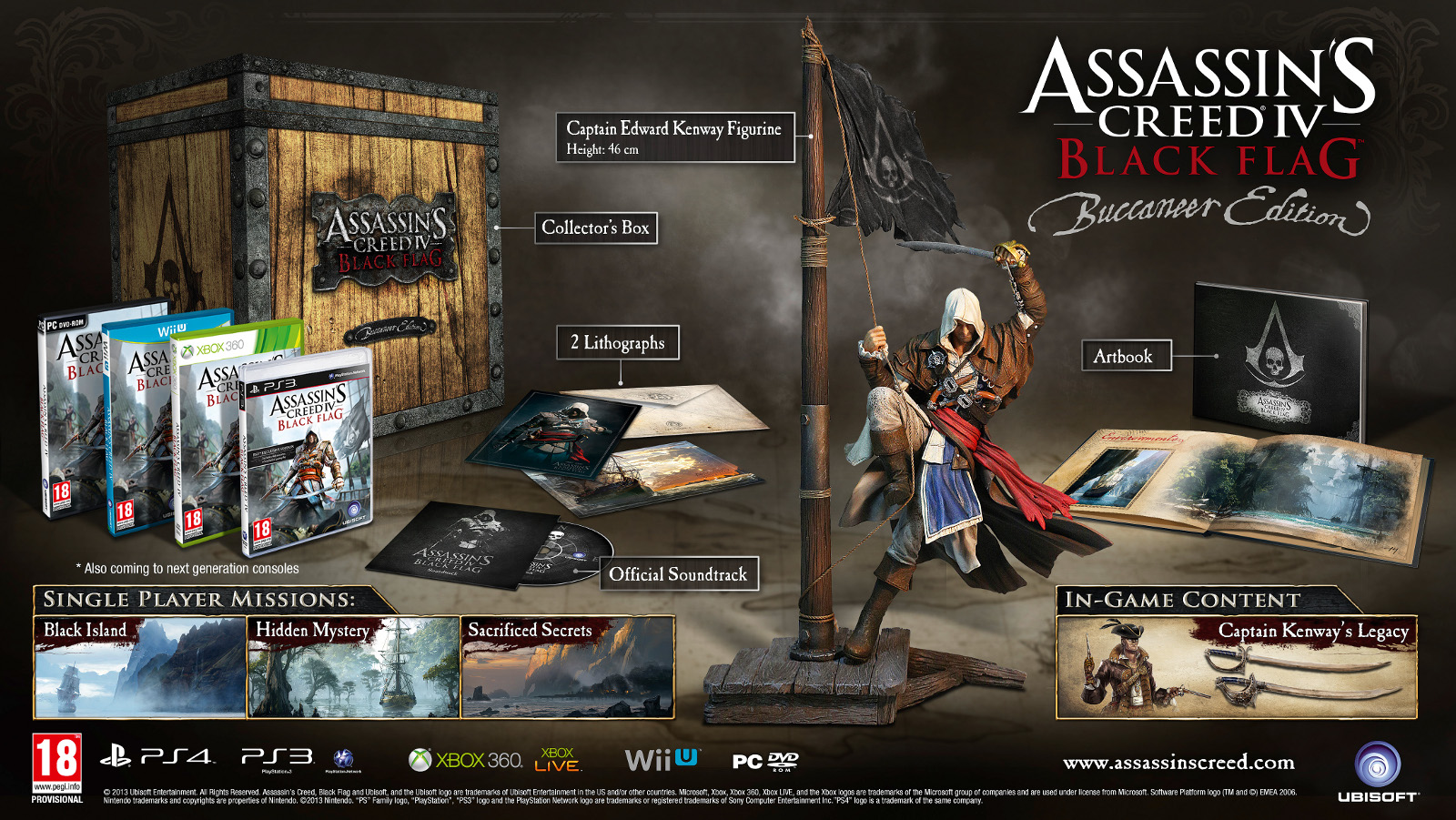 - And all existing additional Assassin’s Creed IV Black Flag unlockable game content, including single player missions, skins and weapons.