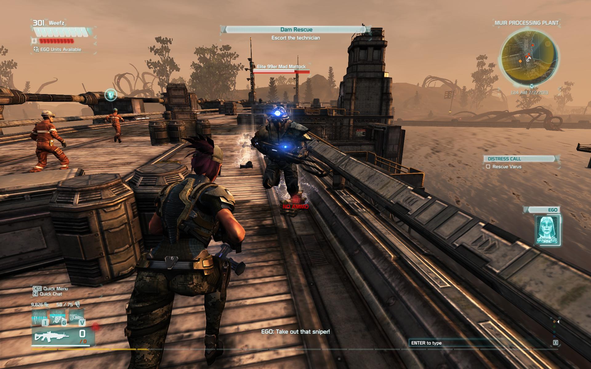 The other problem you’ll run into with friends is that Defiance uses seamless instances (known as “phases”) and hasn’t quite got the hang of grouping. You’ll wade into battle, guns blazing only to look around and realise that your companion is simply gone. S/he will be fighting the exactly the same battle but in a different phase. There’s a menu command to switch to your group member’s phase but it doesn’t always work and it shouldn’t be required.