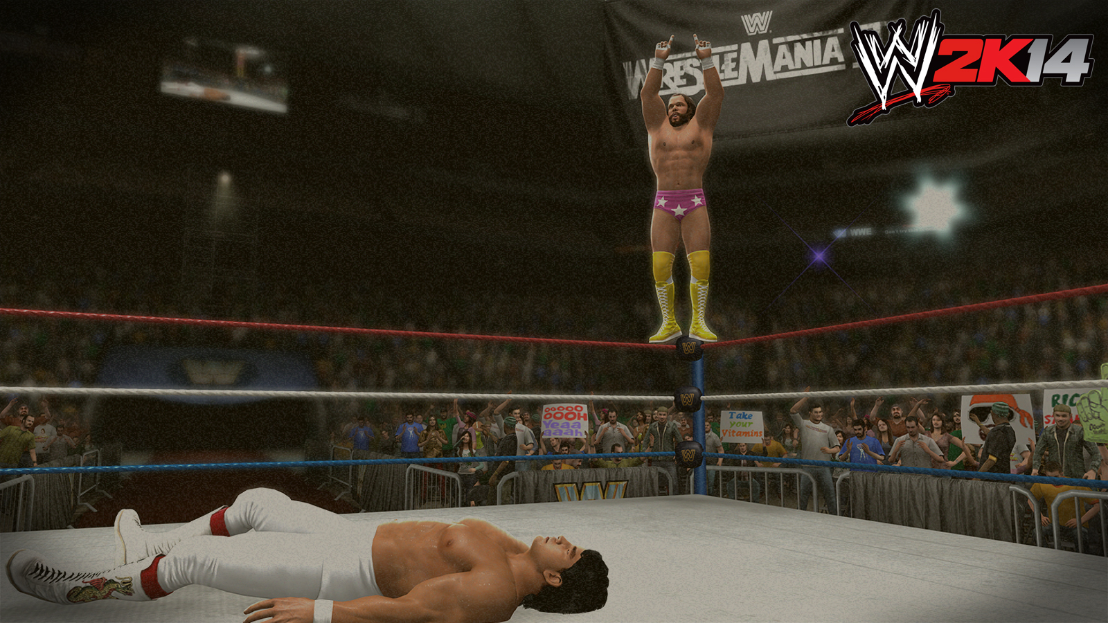 This year’s version of WWE will include ten(-ish) huge Wrestlemania match-ups from the early years when Hulkamania Ran Wild. Covering Andre The Giant’s classic against Big John Studd in the 1985’s first Wrestlemania up to Yokozuna’s back-to-back fights in Wrestlemania IX, here are the WWE 2K14 fights you’ll be able to play from the earliest years: