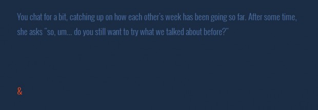 It’s really hot. Which is the least interesting thing I have to say about it, but probably one of the most important. Play it for that reason alone if you need an interactive text-based sex sim that isn’t at all exploitative and is adult in a way that most games aren’t.