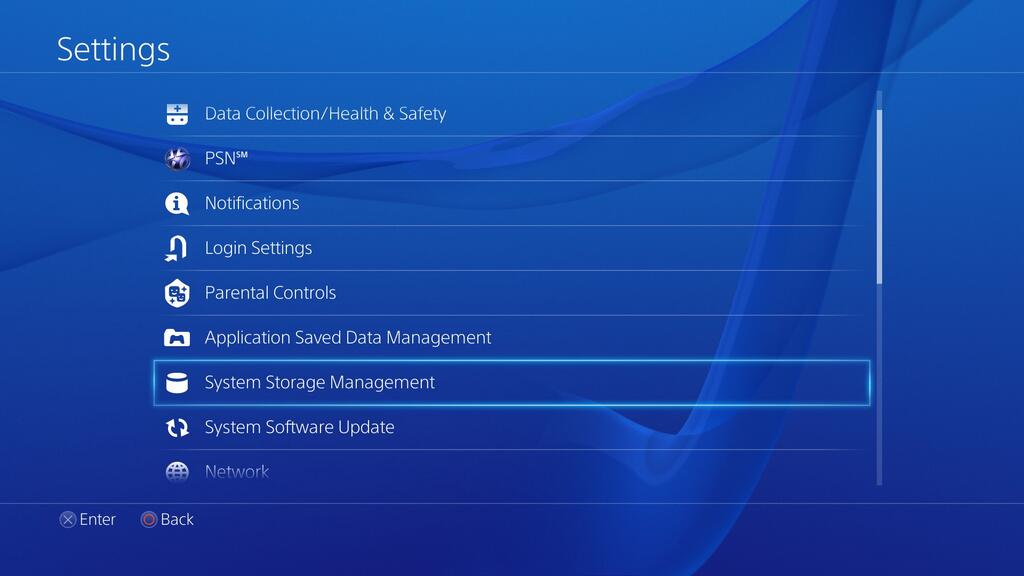 - Go into Settings (up on the d-pad and far right) and choose System Storage Management.