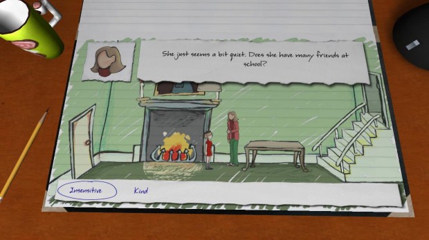 I suspect this applies to much of the game, as it does in real life. Thanks to your unknown history with each character, you can end a relationship at the click of a button, or change its nature completely. You can also influence those around you, though to me, the payoff for each NPC’s story thread really wasn’t that interesting. The game is only an hour long, which makes it difficult to bond with any of the people in your teenager’s life, though you could always replay it with different choices to get the super-secret ending listed in the achievements.