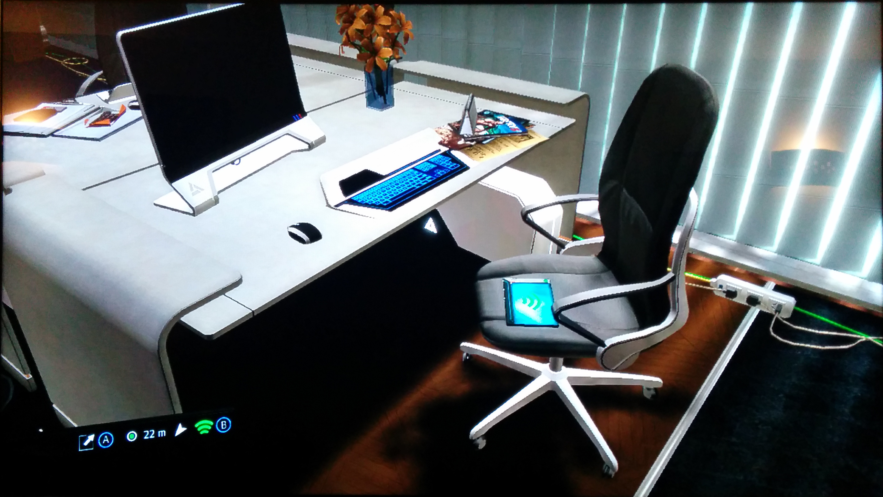 4. 2nd floor, main office between 2 sets of beanbags. Near the giant Abstergo logo.