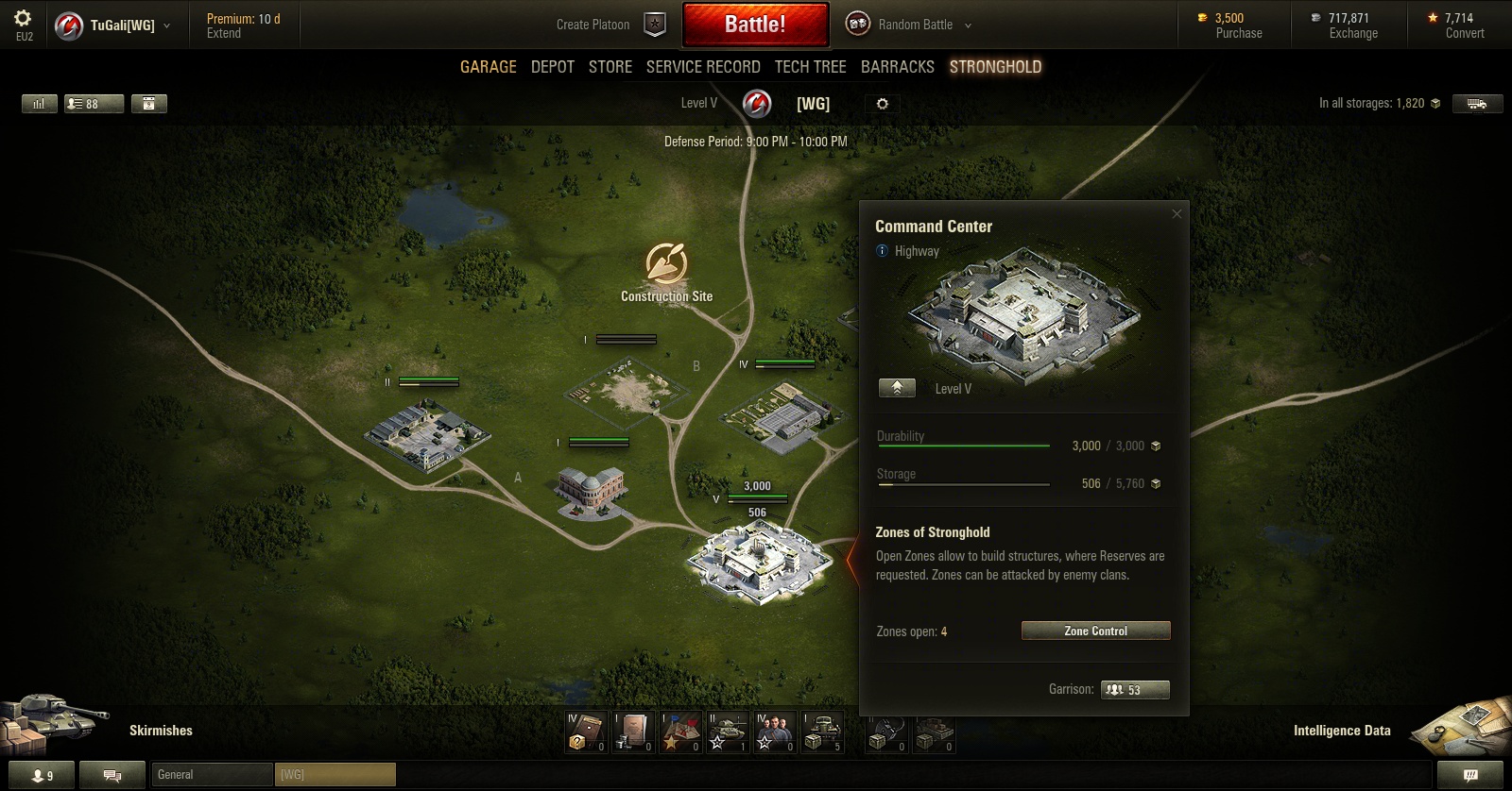 Of course, World of Tanks is all about the ground battles. Stronghold mode has three different types of battle: skirmishes, attacking a stronghold or defending your own stronghold. As a clan, you’re expected to rally the defences. Once you upgrade your command centre beyond to level 5 or above, you’re open to invasion by other clans for a fixed hour every day, as set by your clan commander. The commander can also choose one day of the week for Ceasefire, where no one can attack your base. Perhaps most of the clan wants to spend Wednesday evenings with their families. Strongholds are serious business but you’re allowed to have a life.