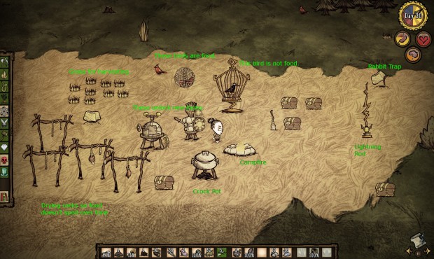 Now, I realise that this is a lot of information to take in. As long as you remember the first three, you should get along fine with most Don’t Starve survivalists. You may even survive a whole week without getting yourself killed.