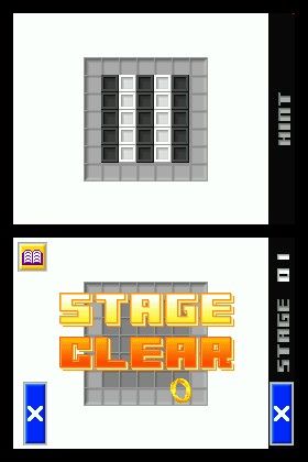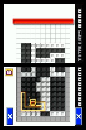 You play by flipping puzzles pieces between black and white. Once you have made a row all the same colour, it disappears and remaining rows drop down Tetris-style. I like puzzle mode, where you get a pattern and you have to draw a single line to clear the entire board. Easy to start with but once you hit the twnety-fifth puzzle you really have to think carefully. There are a hundred set puzzles in all, plus some unlockables and a custom designer to make your own.
