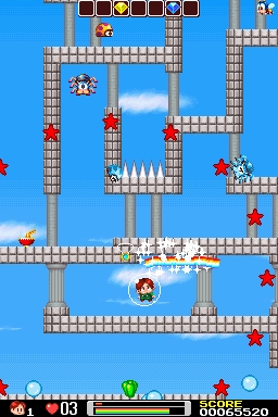 Yep, that old Taito arcade classic Rainbow Islands (anyone remember the wonderful Amiga A500 version by Graftgold? Fantastic it was…) is coming to the DS courtesy of Rising Star Games.