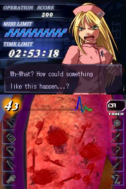 It has its flaws – the missions jump from being really easy to mind-bogglingly hard but at least the storyline is entertaining. Plus, by the second or third time you replay a mission, you’re thinking “There’s no way I’m gonna let this damned game beat me. Grrrrrrgh!!!” Each mission gets a final rank as well so you can replay the ones with low scores: C is rubbish – you could deliberately hack on your patient and if he survives you still get a C. B is okay, A is pretty kick-arse and S is Super-Special Surgeon! Well, maybe not, but it’s bloody hard to get!