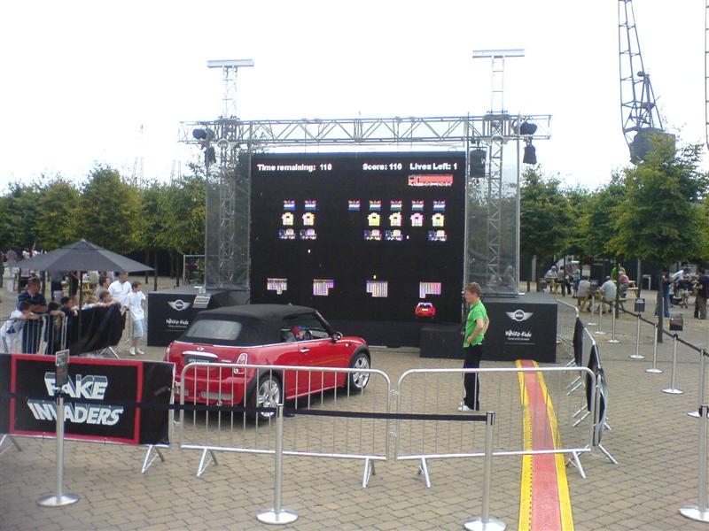 Update 23rd Jul 06: Added a picture of the Mini car stand’s “Fake Invaders” game taken this afternoon during my visit to the car show at Excel.