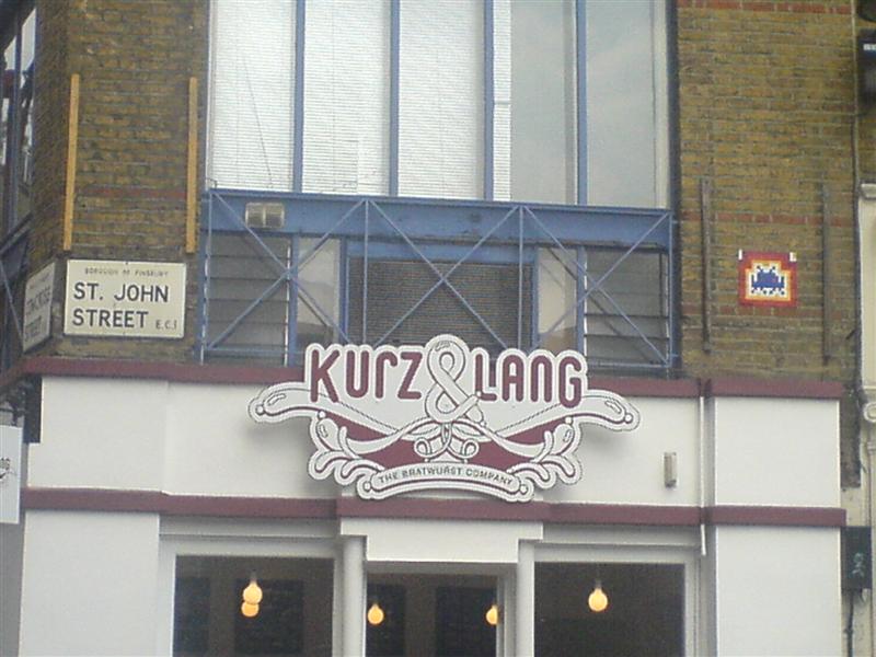 Whilst out for lunch yesterday afternoon (Friday, 21st July 06) I spotted this Space Invader lurking above Kurtz and Lang at the corner of St John Street and Cowcross Street in Clerkenwell, London (location via Multimap or Google maps).
