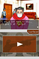 The greatest thing about the Phoenix Wright series is the characters that you meet. They’re all quirky and distinctive. So why does Phoenix not grow at all during the first three games? Even by the end of game three, he’s still a self-doubting rookie who needs a sidekick to kick him into action. This was made all the more obvious in the chapter where you get to play Edgeworth, self-confident and in control. Frankly, Edgeworth was just awesome in that chapter and I really hope that Gyakuten Kenji keeps him that way.