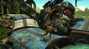 Fortunately, Enslaved has none of that. There is a character known as Pigsy but he’s not a floppy-eared monster. In the 4 chapters I played, there was no sign of piggy horrors and it quickly settled into a nice tale of spaceship destruction, android smashing and general carnage.
