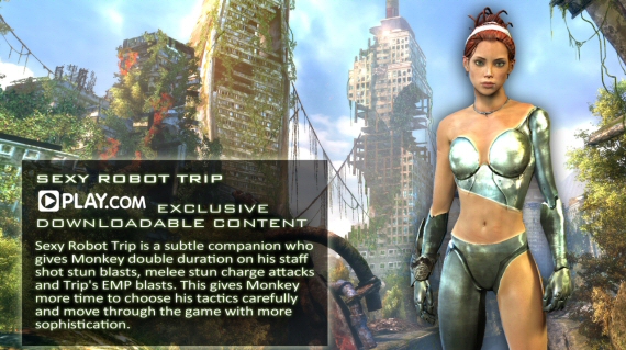 The game will be out on 8th October. Preorder Enslaved: Odyssey To The West from Play.com and get a truly horrendous bonus skin for Trip that doubles your duration on stun attacks. Whoever designed that should be slapped with a large trout until he crawls back under his rock. Even Trip looks unimpressed and she’s wearing the thing.