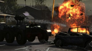 So yeah, Homefront. Koreans have successfully invaded the US. Cue lots of military bravado, funny accents and urban destruction. The maps I played are very nice, at least to a multiplayer newbie like me. For a start, they actually look like we’re fighting an embattled city, as opposed to a world full of conveniently-placed chest-high walls. You have plenty of sniper positions up in the hills and lots of cover in the form of trucks, flyovers and building ruins.
