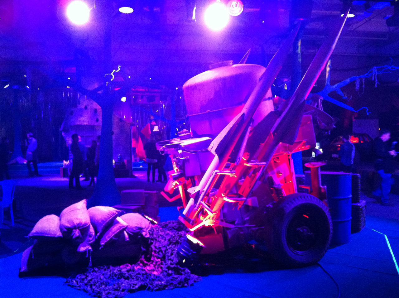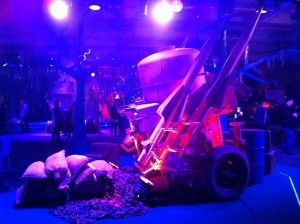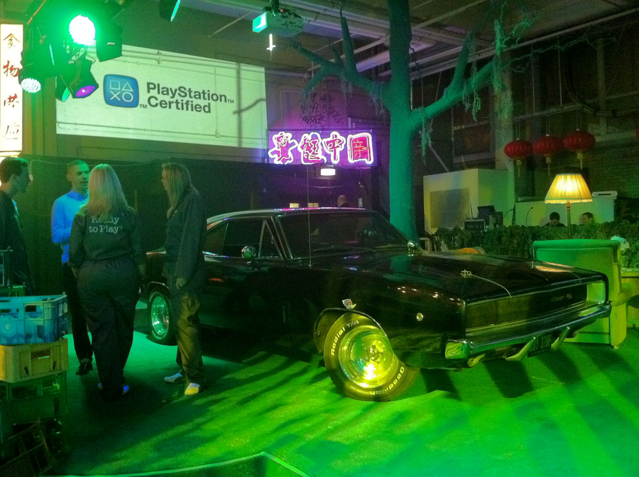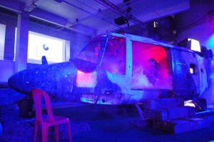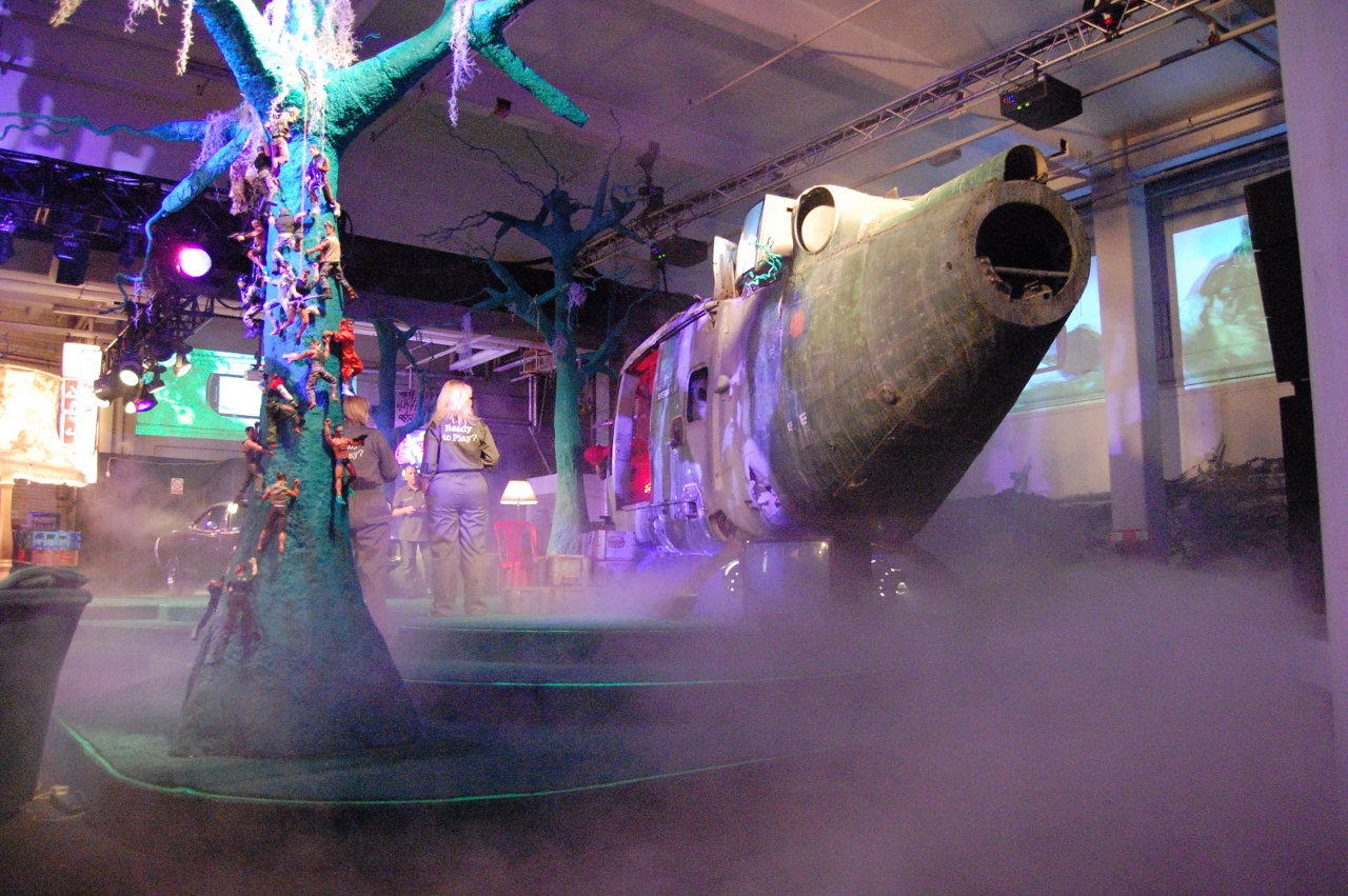 Essentially there is one main room containing all sorts of stuff like a crashed helicopter and car, Dodge Charger car, action men climbing a tree, noodle bar (serving free drinks) and a rocket launcher. There’s also quite a bit of seating available with sofas and chairs dotted all over the place. Handy when you want to spend some time with the smartphone.