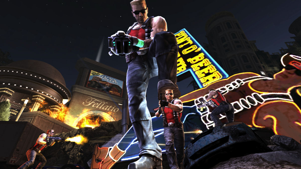 On Friday 6th May, original UK release date of Duke Nukem Forever, a crowd of games journalists were summoned to the back room of a bar and plied with drink, mini burgers and boob-shaped cupcakes. On the big screen was a bevy of large-breasted CG “beauties” and off to the left was a sweet 4 vs 4 setup running none other than Duke Nukem Forever’s multiplayer. GET IN!