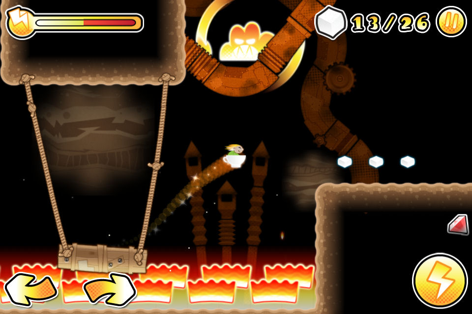 The problem faced by many developers when placing a ‘traditional’ game genre onto the iOS platform is one of suitability. Is it really possible to fit a 2D, side-scrolling platformer onto a mobile device? Cobra Games says “Yes”… and I have to agree. Playing Storm in a Teacup felt like a breath of fresh air in an otherwise stagnant pond. A perfect mix between ‘casual’ and ‘hardcore’ – its short, time-sensitive, levels, combined with traditional, tricky challenges to overcome – Storm in a Teacup feels like a perfect way to spend five minutes playing a video game.