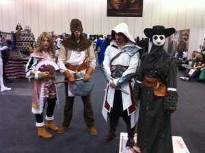 For the unintiated, MCM stands for Movies, Comics, Manga Memorabilia Media. It changes every time I look it up. You’ll find stalls, performances, panels, signings and all sorts of stuff. The show earlier this year even included live wrestling performances. This convention covers a huge range of geek hobbies and over the past few years, the gaming presence has grown steadily. Our highlight of May’s show was undoubtedly the Ubisoft-sponsored Assassin’s Creed Brotherhood cosplayers that roamed around the show floor.