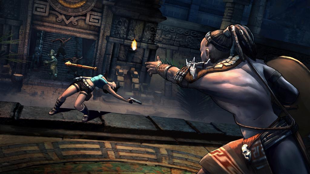For those who haven’t played the game on Xbox LIVE Arcade, Guardian of Light is not your standard Tomb Raider game. Instead it’s a 3rd person, non-linear adventure game. There is also an emphasis on co-operative gameplay as you control either Lara or an ancient Mayan tribesman called Totec through puzzle-infested levels in search of treasure. You have to work together to survive, rather than just lone wolfing it through the game as in previous Lara Croft adventures.