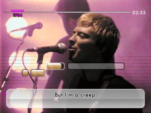 Once you’ve had a good rummage around the UK Hits song listing it’s time to figure out exactly how you’re going to scare the neighbour’s pets with your raw, undiscovered talent. It’s a little overwhelming at first as there’s a multiplicity of modes available. Menu navigation here is nicely designed and intuitive, my only gripe is that on the Wii version the angle at which the controller is being held will spin each menu due to the internal gyrowotsit. This is fine once you realise but I spent an infuriated ten minutes swearing at the television whilst trying to get the menu to stop moving so I could select my song.