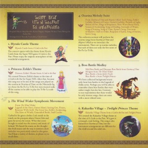The program provided insights into each of the songs/medleys. Reading it made me realise just how many iconic songs the Legend of Zelda series has produced.