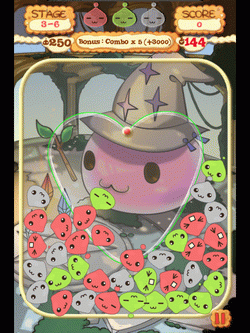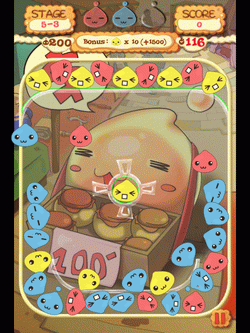 The physics engine in Angel Poring works well here as exploded Porings fly about all over the place, connecting with other on like for like colours as they go.