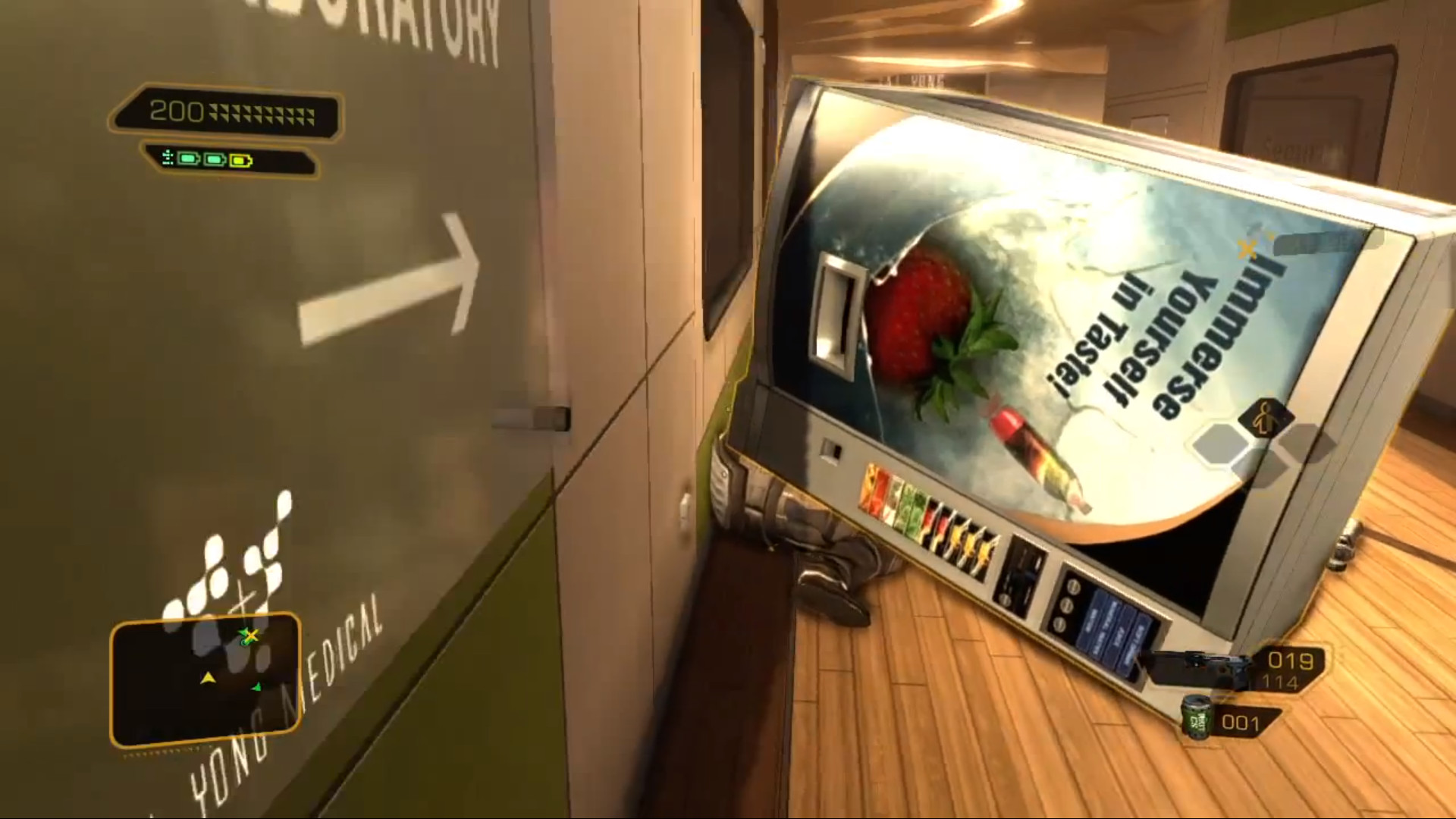 Just when the thrill of being an unhinged corporate assassin more in line with Syndicate than DE had started to wear off, the vending machines ramped it up a notch. This was the ultimate insult. Adam Jensen doesn’t kill you with weapons. Adam Jensen hides behind vending machines and when you come up to inspect it he throws it at you so hard you die.