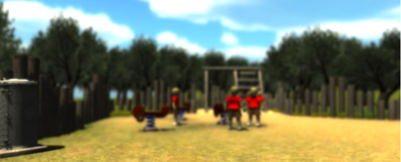 Though it’s clearly a side effect of the game not being done yet, all of the models for the other children in the game don’t have anything that differentiates them. It’s the same character dotted around the map. They also don’t move and they don’t have faces either. This actually works to the game’s benefit. If we imagine that the world takes place from within this child’s perspective then character traits from other people aren’t important. Everyone might as well all look the same, not be differentiated by their appearance or their expressions. The only thing relevant about them is that their presence and the sound they’re shouting is making you uncomfortable to the point of panic.